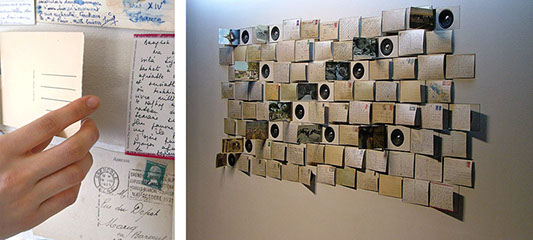 The spectator is able to turn them around so as to discover the images printed on the back. This movement triggers a short soundtrack. If several postcards are ‘open’ at the same time, several soundtracks will combine as if in a sound kaleidoscope. Bits of sentences, commentaries suspended. Happy, sad, or neutral-feeling events, well-worn turns of phrases, modest ones, at once calm and passionate: the past, the present, and the future are condensed together, crystallized there.
