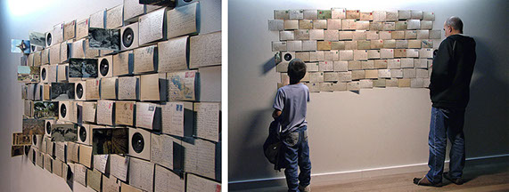 Interactive sound installation - postcards, loudspeakers, audio players and amplifiers, computer - size : in situ