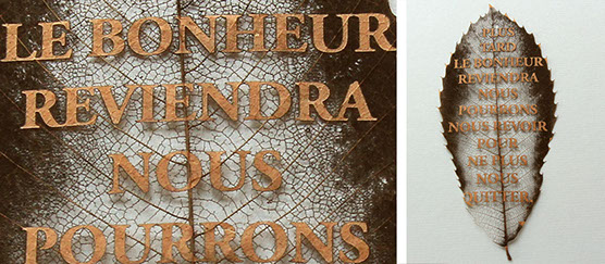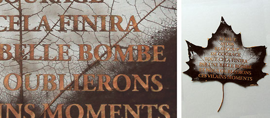 Sur ces feuilles ils ont gravé, "tatoué" à l'aide d'un laser les fragments épistolaires.