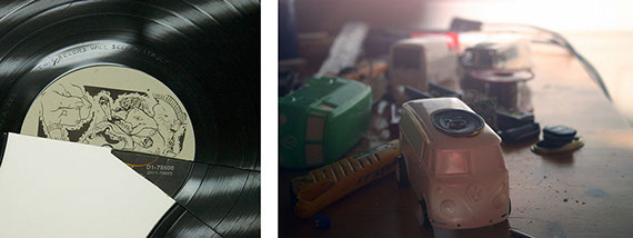 Nous avons donc découpé, des centaines de disques vinyles, pour la plupart issus de notre collection personnelle.