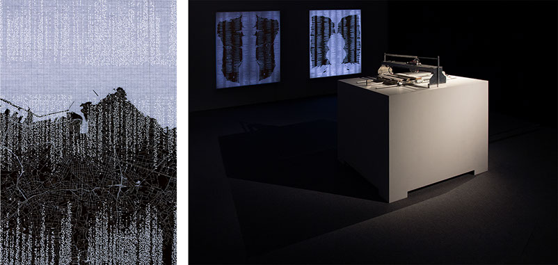 Le code parle, le papier respire. Le code percé : un univers de points lumineux qui transforme les cartes. Comme les personnes rencontrées, comme les parcours qu’ils ont décrits, l’oeuvre est en permanente mutation : une surface perforée à la fois plane et profonde, organique et architecturale, calme et violente. Il est possible que le spectateur ait sa perception troublée, perturbée. La vision du motif crée par les aiguilles varie selon la place occupée face aux tableaux. La vision de droite sera différente de celle de face ou de celle gauche. De loin on ne voit pas la même chose que de près.