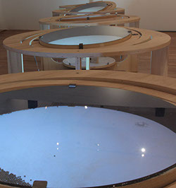 Installation sonore - tambours océans, mécanique giratoire, chants émis par 4 haut-parleurs - dimensions variables