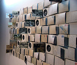 Interactive sound installation - postcards, loudspeakers, audio players and amplifiers, computer - size in situ