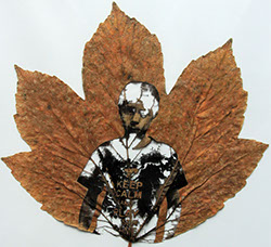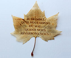 Gravure laser sur feuille d'arbre - textes extraits de correspondances de la Première Guerre mondiale -